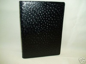 This leather Portfolio is handmade from a beautiful black or brown faux alligator grain leather.It holds a standard 8x11 yellow legal pad on one side-the other has pockets for single sheets and business cards,also a pen holder.Much classier than the usual vinyl portfolio, and is much more durable-lasts forever.